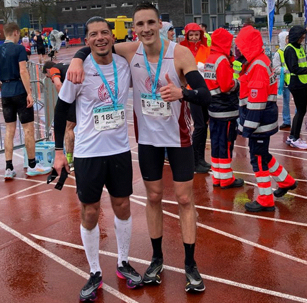 Yann Lahser konnte trotz der widrigen Bedingungen eine Bestzeit abliefern. Bei den Männern lief er in einer Zeit von 1:16:23 Stunden neue persönliche Bestzeit und auf den dritten Platz in seiner Altersklasse. „Ich habe mich super gefühlt und bin einen Negativsplit gelaufen. Es lief alles wie geplant resümierte Yann kurz nach dem Rennen. Patrick Schwager verbesserte ebenfalls seine persönliche Bestzeit um Lichtjahre. In einer Zeit von 1:20:14 Stunden belegte er den 4 Platz in der AK40 und gab sich äußerst zufrieden. „Ich habe von der guten Vorbereitung profitiert und bin 10 Minuten schneller als in Ulm bei den Deutschen Meisterschaften im September gelaufen. Ich glaube da geht bestimmt noch mehr.“