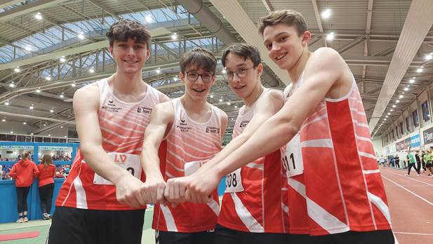 Bei den Nordrhein Hallenmeisterschaften in Leverkusen lieferten Jonah Stricker, Constantin Behne, Justus Behne und Niklas Meller in der 4x200m eine klasse Leistung ab. Die vier Bottroper Athleten liefen in der Formation der Startgemeinschaft Rhede-Sonsbeck-Bottrop eine Zeit von 1:37,19 Min. auf Platz zwei hinter der Staffel des TSV Bayer 04 Leverkusen. Herzlichen Glückwunsch ... nächster Halt für das Quartett ... Düsseldorf ... NRW-Landesmeisterschaften Anfang Februar.